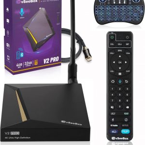2023 vSeeBox V2 Pro with Voice Remote, Backlit Mini Keyboard and 8K HDMI Cable (4GB RAM + 32GB ROM) $40.00 $30.00